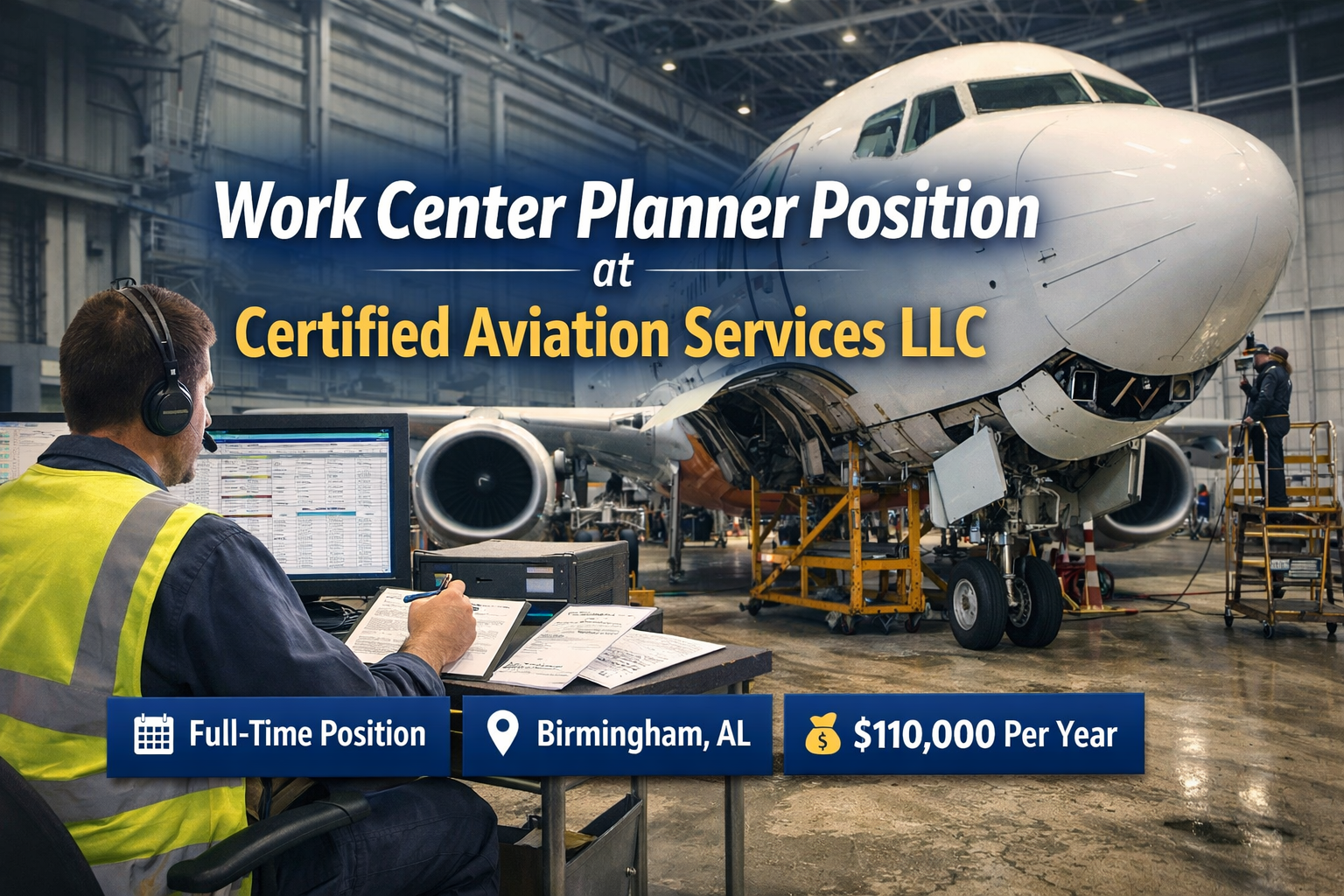 If you are looking for a very high-paying, full-time job in aviation maintenance, the Work Center Planner position at Certified Aviation Services LLC in Birmingham, Alabama, offers an incredible opportunity. With a salary of $110,000 per year, this role combines administrative skills with a aviation maintenance knowledge, making it ideal for candidates who enjoy structured planning and operational support in the aviation industry.